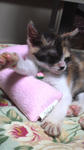 ピンクの物体は、前に私が何かの展示会でもらってきた、プライスレスなミニクッション。
